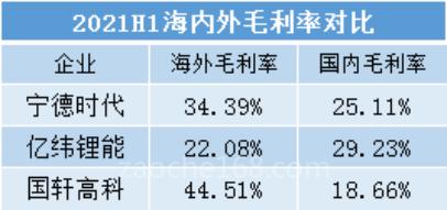 就毛利率來看,寧德時代、國軒高科海外毛利率超過國內(nèi),其中國軒海外毛利率達到44.51%,較國內(nèi)業(yè)務(wù)高出近26個百分點。