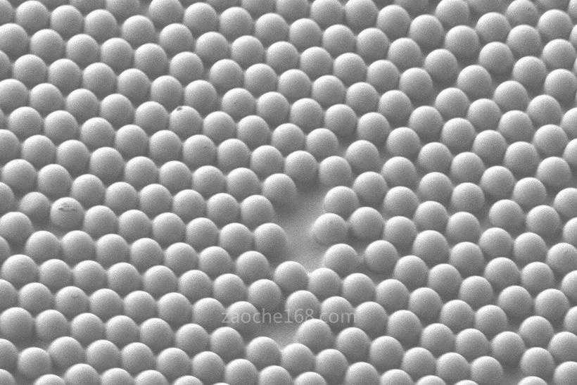 該項(xiàng)研究的重點(diǎn)是一種逆向反光材料,即一種由聚合物微球構(gòu)成的薄膜,被放置在一個(gè)透明膠帶的粘性面上。微球有部分嵌在膠帶中,凸出的部分就是MCI。