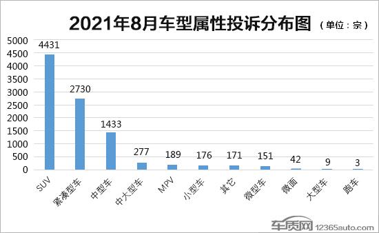 從車型屬性來看,本月中型車、微型車和大型車的投訴量環(huán)比略有增長,其余車型則均出現(xiàn)不同程度的下降。其中,中大型車降幅最大,投訴量較7月份下降16.6%。