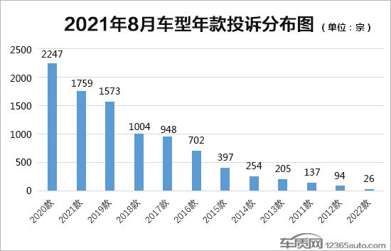 8月份,2020款車型依舊是投訴主體,投訴量始終保持在2000宗之上,環(huán)比微增1.4%。2021款車型本月投訴量與上月基本持平,排名穩(wěn)居第二位。值得注意的是,2022款車型本月投訴量出現(xiàn)激增,較7月份暴漲2.7倍,投訴增量多來自于部分合資品牌車型。