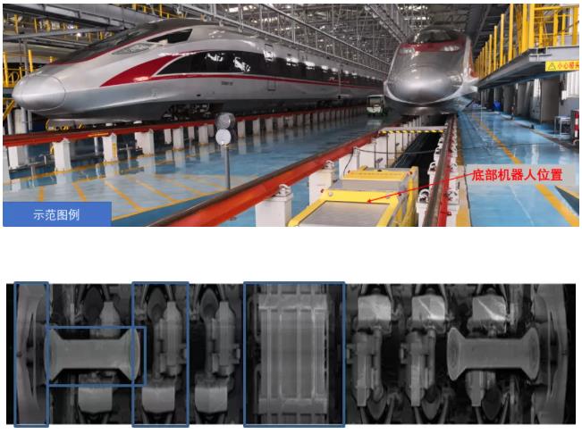 配合底部維修機(jī)器人,完成列車進(jìn)入檢測站后底部掃描,檢查底板、轉(zhuǎn)向架、輪對、制動裝置、車鉤裝置等關(guān)鍵部件的外觀和尺寸。