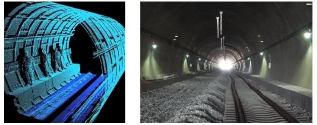 鐵路隧道是專供火車運(yùn)輸行駛的通道。隧道的不合理施工及在長使用時間后可能出現(xiàn)裂縫、滲水等嚴(yán)重問題,更嚴(yán)重可能導(dǎo)致坍塌,所以隧道安全檢測不容忽視。主要檢測內(nèi)容:完成隧道外形輪廓尺寸測量、特征檢測(突起裂縫等),排查可見缺陷。