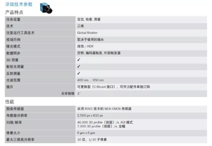 1. SICK Ranger3系列 分體式3D相機(jī)