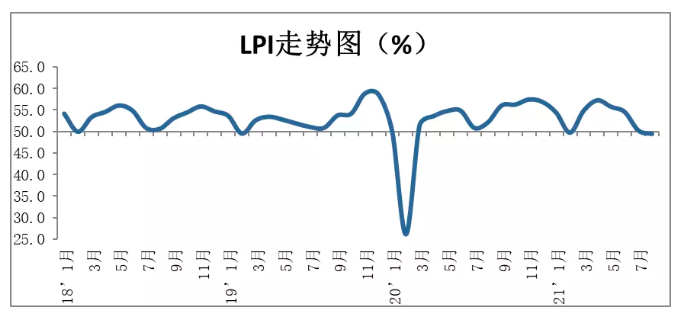 2021年8月中國物流業(yè)景氣指數(shù)為49.5%