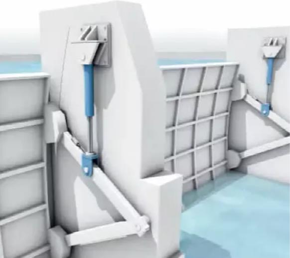 在水電站中,那些體積龐大的重型門帶有伸縮裝置,通過(guò)液壓缸進(jìn)行移動(dòng),BTL ProCompact HB位移傳感器安裝在液壓缸中,可以即時(shí)監(jiān)測(cè)門的位置以實(shí)現(xiàn)高效換水功能。
