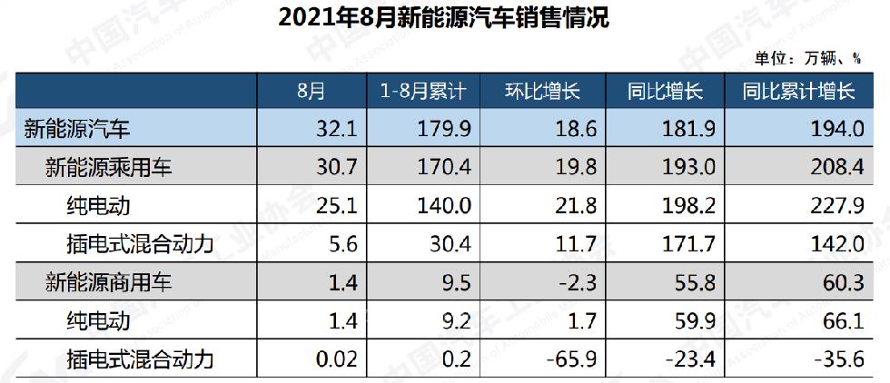 新能源汽車市場依然跑贏大市,8月產(chǎn)銷環(huán)比和同比繼續(xù)保持增長,產(chǎn)銷量首次超過30萬輛,再創(chuàng)歷史新高,分別達(dá)到30.9萬輛和32.1萬輛,環(huán)比增長8.8%和18.6%,同比增長均為1.8倍。