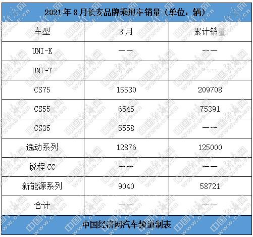 據(jù)長(zhǎng)安汽車9月8日公布的成績(jī)單顯示,“8月,長(zhǎng)安系中國(guó)品牌汽車銷量為120753輛;長(zhǎng)安系中國(guó)品牌乘用車銷量為84208輛。1-8月,長(zhǎng)安系中國(guó)品牌汽車銷量突破120萬(wàn),同比增長(zhǎng)38.5%;長(zhǎng)安系中國(guó)品牌乘用車銷量突破80萬(wàn),同比增長(zhǎng)49.5%”。另?yè)?jù)乘聯(lián)會(huì)發(fā)布的數(shù)據(jù)顯示,長(zhǎng)安品牌乘用車在8月銷售新車8.3萬(wàn)輛,同比下滑3%,位列乘用車銷量排行榜第7位。