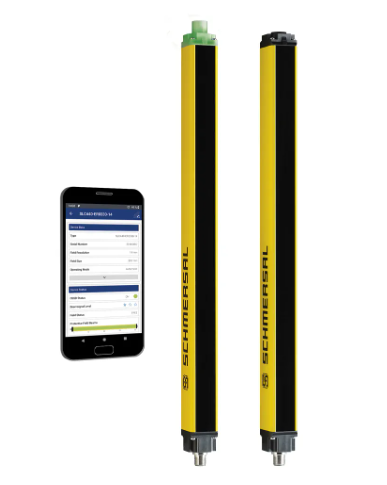 SLC440/COM安全光幕是一種內置低能耗藍牙功能的光電防護裝置(AOPD),通過藍牙接口,智能手機或平板電腦可實時獲取設備運行時的所有狀態(tài)和診斷數(shù)據(jù)。