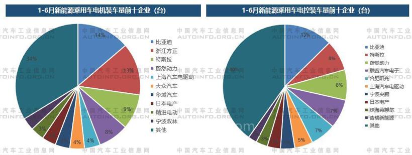 從企業(yè)表現(xiàn)來(lái)看:2021年上半年,比亞迪、浙江方正、特斯拉和蔚然動(dòng)力分別在在電機(jī)電控市場(chǎng)份額排名前三,其中比亞迪、特斯拉和蔚然動(dòng)力均為整車企業(yè)(蔚然動(dòng)力為蔚來(lái)下屬公司),浙江方正第三方獨(dú)立電機(jī)公司。