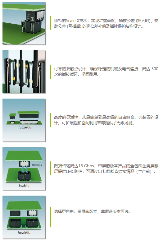 · 高適配 - 多種堆疊高度及不同連接方式(夾層、共面、母子板)實現(xiàn)靈活設(shè)計