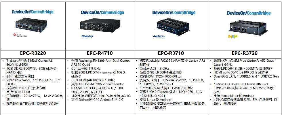 研華RISC/Arm 邊緣智能網(wǎng)關(guān)適配CommBridge產(chǎn)品型號