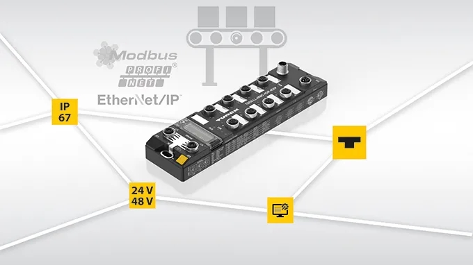 除了控制滾筒電機,該TBEN模塊集成的ARGEE邏輯控制功能可以實現(xiàn)數(shù)字量信號直接控制,從而無需通過網(wǎng)絡(luò)連接至中央控制器。通過多協(xié)議以太網(wǎng)接口,該模塊可自適應連接至Profinet, Ethernet/IP 或 Modbus TCP通訊網(wǎng)絡(luò)。
