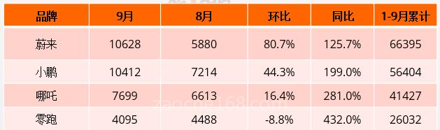 十一國(guó)慶佳節(jié)的第一天,哪吒、小鵬、零跑、蔚來(lái)造車新勢(shì)力第一梯隊(duì)率先發(fā)布9月份交付量。