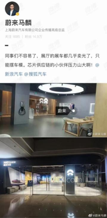 蔚來(lái)汽車馬麟在APP發(fā)表感嘆:“同事們不容易了,展廳的展車都幾乎賣(mài)光了,只能擺車模。芯片供應(yīng)鏈的小伙伴壓力山大啊?!?/P>