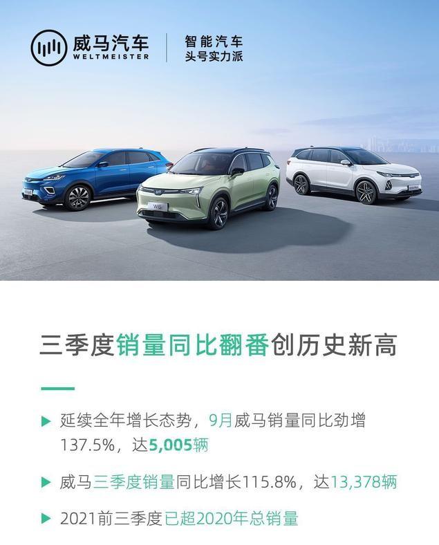 說(shuō)實(shí)話,威馬汽車(chē)一開(kāi)始還是保持了強(qiáng)勁的勢(shì)頭,可惜后來(lái)一直不溫不火。10月1日,威馬汽車(chē)發(fā)布銷(xiāo)量報(bào)告:9月威馬汽車(chē)銷(xiāo)量為5005輛,同比增長(zhǎng)137.5%。第三季度威馬汽車(chē)銷(xiāo)量達(dá)13378輛,同比增長(zhǎng)115.8%,創(chuàng)單季銷(xiāo)量歷史新高;前9個(gè)月累計(jì)銷(xiāo)量29043輛,超過(guò)去年全年銷(xiāo)量總和的22495輛。對(duì)于國(guó)內(nèi)新能源汽車(chē)的前景,沈暉曾反復(fù)強(qiáng)調(diào),中國(guó)家庭擁有車(chē)輛基數(shù)低、潛力大,對(duì)新能源汽車(chē)和智能體驗(yàn)接受度高。15萬(wàn)至25萬(wàn)元的價(jià)格區(qū)間是潛力最大的必爭(zhēng)之地。