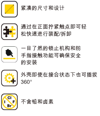 穿板式下殼體即使在接合狀態(tài)下也可以自由插拔 可直觀操作鎖止機(jī)構(gòu) 顏色(紅色代表正號(hào),黑色代表負(fù)號(hào))和機(jī)械編碼可避免發(fā)生錯(cuò)誤插拔 Han? S ,因此可實(shí)現(xiàn)快速、可靠的端接,并簡(jiǎn)化大批量連接器的組裝工作。