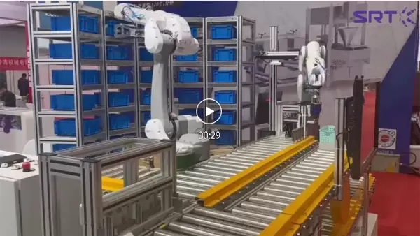 當接收到訂單指令后,機器人將貨架上對應的料箱取出后由傳送帶移動至分揀區(qū)域,配置SRT的柔性夾爪,輕柔無損分揀物料。當作業(yè)完成后,機器人將對應的料箱搬運回儲存庫,整個方案形成一個閉環(huán)作業(yè)流程。