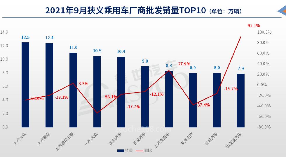 在9月狹義乘用車廠商批發(fā)銷量TOP 10榜單中,上汽系的表現(xiàn)格外引人注目。上汽大眾、上汽通用、上汽通用五菱包攬了該榜單前三甲的席位,此外,上汽乘用車再次入圍,位列第7位。