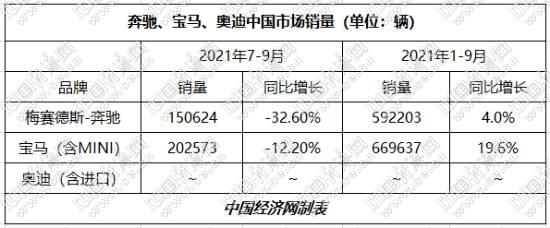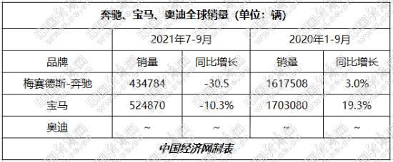 引領(lǐng)豪華車市場的奔馳和寶馬,三季度同樣出現(xiàn)兩位數(shù)的負(fù)增長。數(shù)據(jù)顯示,三季度,奔馳共銷售15.1萬輛,同比降幅超過三成;寶馬共銷售20.26萬輛,同比下降12.2%。此外,奧迪截至目前尚未發(fā)布前三季度的銷量信息。
