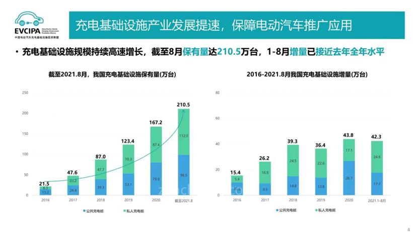 此外,充電位不夠和燃油車占位仍不得不提。實(shí)際上,隨著新能源汽車銷量增長,我國充電基礎(chǔ)設(shè)施建設(shè)也在提速。根據(jù)中國電動(dòng)汽車充電基礎(chǔ)設(shè)施促進(jìn)聯(lián)盟(以下簡稱中國充電聯(lián)盟)發(fā)布的數(shù)據(jù),截止到今年8月,我國充電樁保有量已達(dá)到210萬個(gè),其中公共充電樁達(dá)到112萬個(gè)。今年1-8月增量來看,數(shù)量已經(jīng)和去年增量非常接近,達(dá)到42.3萬個(gè)。