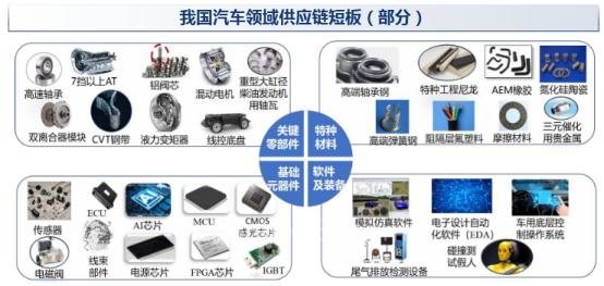 汽車產(chǎn)業(yè)正在經(jīng)歷有史以來最大規(guī)模的產(chǎn)業(yè)鏈和價值鏈的重構(gòu)。目前還存在若干短板和薄弱環(huán)節(jié),主要集中在關(guān)鍵零部件和技術(shù)、原材料、基礎(chǔ)元器件、研發(fā)檢測等輔助性工業(yè)信息軟件和裝備等方面。