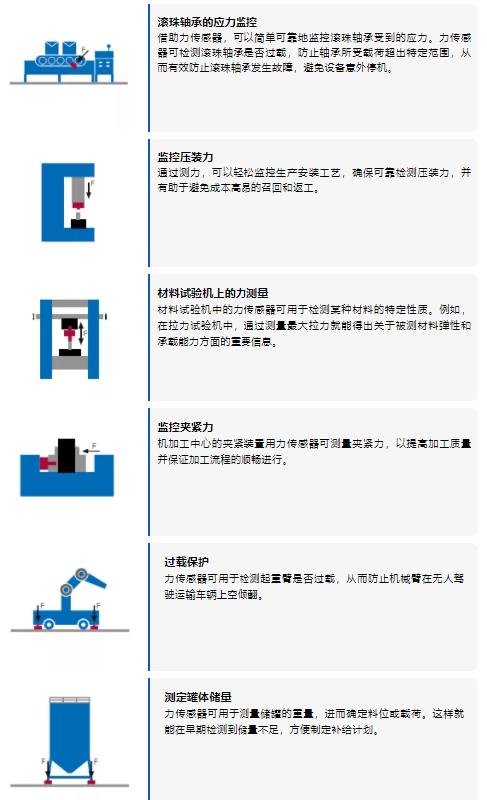 過程優(yōu)化、質(zhì)量保證和停機預防是任何技術(shù)設(shè)備或機械裝置都要面對的關(guān)鍵問題。這正是力和應(yīng)變力傳感器的用武之地:它們可以在早期檢測到軸承、安裝件或支撐件是否存在磨損或過載。