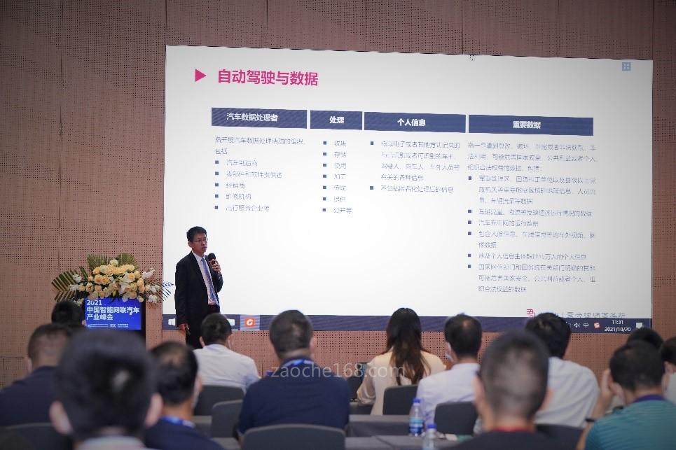 君合律師事務所資深合伙人張紅斌律師演講的題目是:智能網(wǎng)聯(lián)汽車的法律環(huán)境與問題。演講分為中國智能網(wǎng)聯(lián)汽車法律與政策概況、自動駕駛與網(wǎng)絡安全、自動駕駛與數(shù)據(jù),以及自動駕駛與法律責任等四部分。張律師通過介紹三國時期木牛流馬,引入交通運輸和代步工具發(fā)展這一話題,分享了自動駕駛的商業(yè)應用現(xiàn)狀與近期智能汽車產(chǎn)業(yè)投融資項目,智能汽車造車新勢力等背景情況,對汽車行業(yè)國家宏觀政策和發(fā)展戰(zhàn)略愿景、智能汽車生產(chǎn)企業(yè)與產(chǎn)品準入規(guī)定、自動駕駛道路測試規(guī)范,網(wǎng)絡安全以及汽車數(shù)據(jù)安全相關規(guī)定、自動駕駛的法律責任等中國智能網(wǎng)聯(lián)汽車的法律與政策進行了介紹與點評,并進一步探討了智能網(wǎng)聯(lián)汽車法律法規(guī)存在的問題以及完善方向。