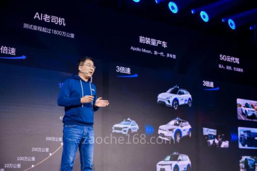首先出場(chǎng)的是百度副總裁、自動(dòng)駕駛技術(shù)部總經(jīng)理王云鵬,他對(duì)近期Apollo的發(fā)展如是介紹道:Apollo無(wú)人駕駛?cè)亍扒把b量產(chǎn)車”、“AI老司機(jī)”、“5G云代駕”正以“三倍速”不斷進(jìn)化。