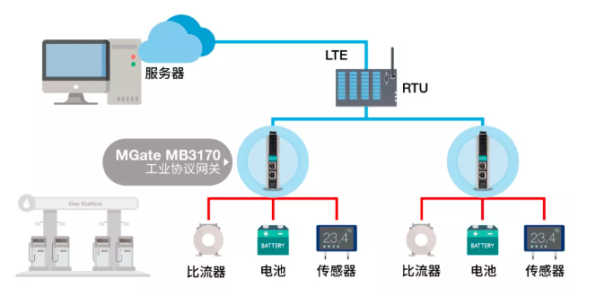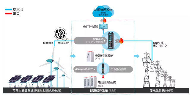 為確保儲(chǔ)能系統(tǒng)順暢運(yùn)行,需要密切關(guān)注一些實(shí)時(shí)狀況,在控制中心持續(xù)監(jiān)控電池余量、電源穩(wěn)定性和環(huán)境條件等信息。因此,可部署搭載便捷配置工具的協(xié)議網(wǎng)關(guān),幫助運(yùn)維人員從各類現(xiàn)場(chǎng)串口設(shè)備收集數(shù)據(jù),并將數(shù)據(jù)順暢傳輸至以太網(wǎng)系統(tǒng)。此外,協(xié)議網(wǎng)關(guān)內(nèi)置安全功能和詳細(xì)的安全強(qiáng)化指南助力輕松提升設(shè)備安全。