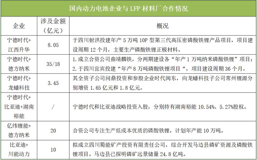 2021年以來,磷酸鐵鋰產(chǎn)業(yè)鏈供給趨緊,庫存維持低位,疊加碳酸鋰、磷酸等原材料價格上漲,動力電池企業(yè)通過入股、增資、收購及合資等方式,紛紛“深綁”LFP材料企業(yè),以加強(qiáng)對原材料的供應(yīng)掌控,鎖定優(yōu)質(zhì)產(chǎn)能供應(yīng),降低采購成本。