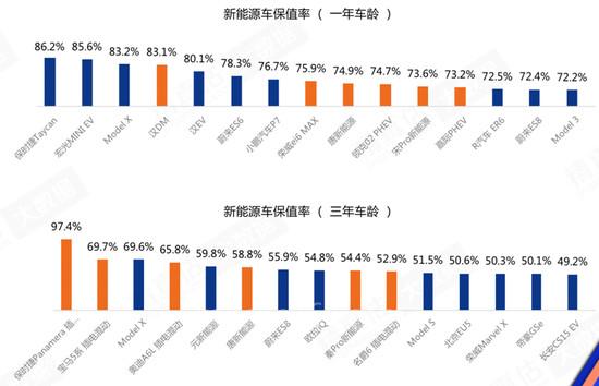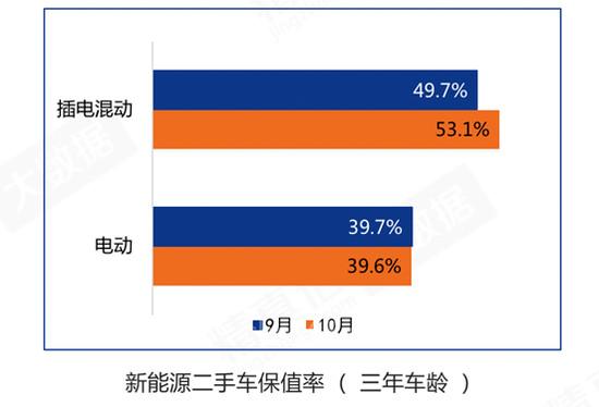 反觀新能源汽車保值率則遜色不少。雖然Panamera插混、寶馬5系插混、漢DM以及Taycan、Model X等許多車型保值率均在70%及以上的水平,但10月插電混動(dòng)三年車齡平均保值率卻只有53.1%,純電動(dòng)車型平均保值率更低,僅為39.6%。