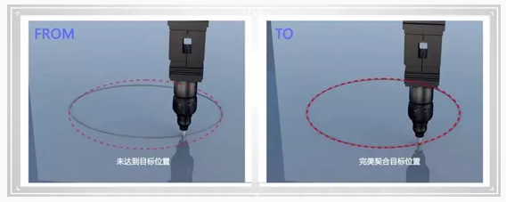 原本手動(dòng)調(diào)整角度測(cè)量不準(zhǔn)確,不能滿(mǎn)足對(duì)角度精度要求高的工藝動(dòng)作。如今,升級(jí)為五軸聯(lián)動(dòng)算法,再加之平臺(tái)精度標(biāo)定,可實(shí)現(xiàn)更高精度的涂膠。