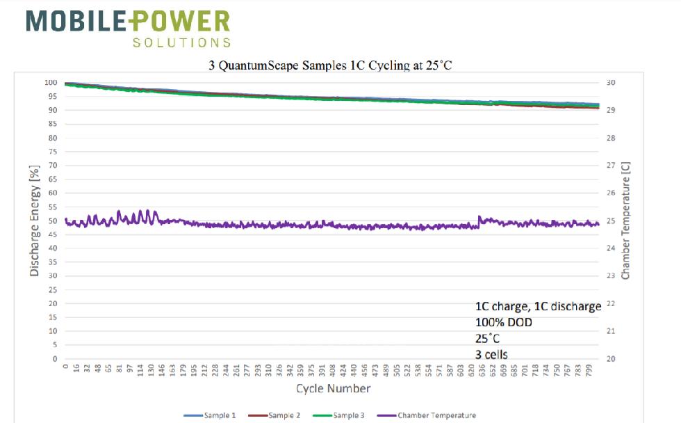 800次循環(huán)——大致相當(dāng)于一輛續(xù)航300英里的車輛行駛24萬英里,展示電池技術(shù)在車輛預(yù)期壽命內(nèi)的性能。