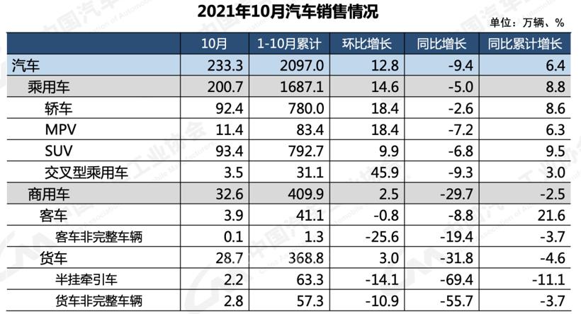 11月10日,中國汽車工業(yè)協(xié)會(以下簡稱“中汽協(xié)”)發(fā)布了最新一期汽車產(chǎn)銷數(shù)據(jù)。10月份,汽車產(chǎn)銷分別達到233萬輛和233.3萬輛,同比下降8.8%和9.4%。1-10月,汽車產(chǎn)銷為2058.7萬輛和2097萬輛,同比增長5.4%和6.4%,增速比1-9月繼續(xù)回落。