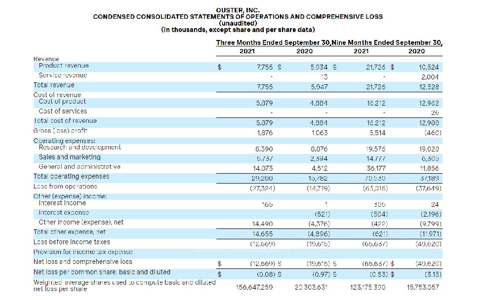 至此,Ouster重申了其2021年的財(cái)務(wù)目標(biāo),即營收為3300萬至3500萬美元,毛利率為25%至27%。