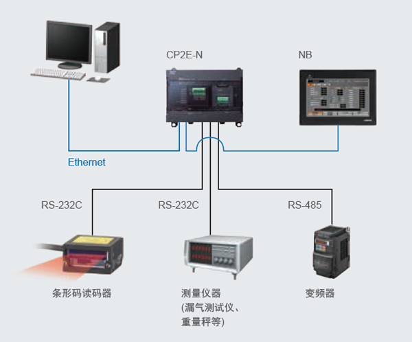 CP2E可通過安裝選項板使用最多3個串行端口。因此,可滿足為獲得更多信息而增加外圍設(shè)備的需求。