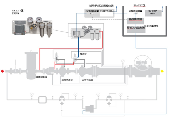 艾默生iMPRS智能調(diào)壓柜解決方案和ERNG控制器配合案例示意。