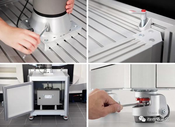 item 的可調(diào)節(jié)腳輪可以立即將穩(wěn)定、固定的支撐結(jié)構(gòu)轉(zhuǎn)變?yōu)橐苿?dòng)機(jī)器人工作臺(tái)。 不僅如此,item 的各種產(chǎn)品還能幫助您搭建機(jī)器人護(hù)罩。