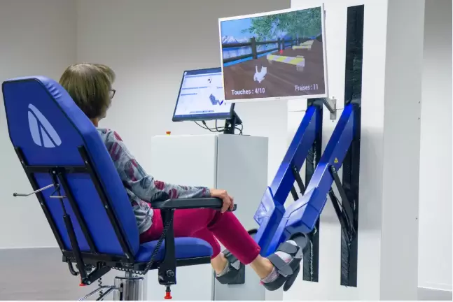 患者還可以用康復(fù)機(jī)器人玩游戲或者通過VR眼鏡在虛擬場景中四處走動,康復(fù)訓(xùn)練過程不像以往那樣枯燥