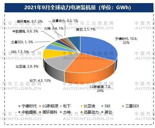 2021年9月,全球電動(dòng)車電池裝機(jī)量約32.9 GWh,同比增長94%,在Top 10榜單中,中國有六家電池制造商上榜,其中寧德時(shí)代仍居榜首,力神以422.2%的漲幅登上榜單。