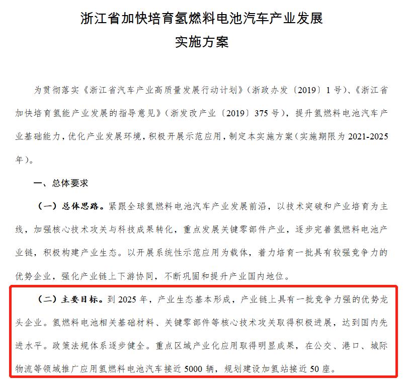 《實施方案》還提到,到2025年,浙江省氫燃料電池汽車產(chǎn)業(yè)生態(tài)基本形成,產(chǎn)業(yè)鏈上具有一批競爭力強的優(yōu)勢龍頭企業(yè),氫燃料電池相關基礎材料、關鍵零部件等核心技術攻關取得積極進展,達到國內(nèi)先進水平。與此同時,相關政策法規(guī)體系也將逐步健全。