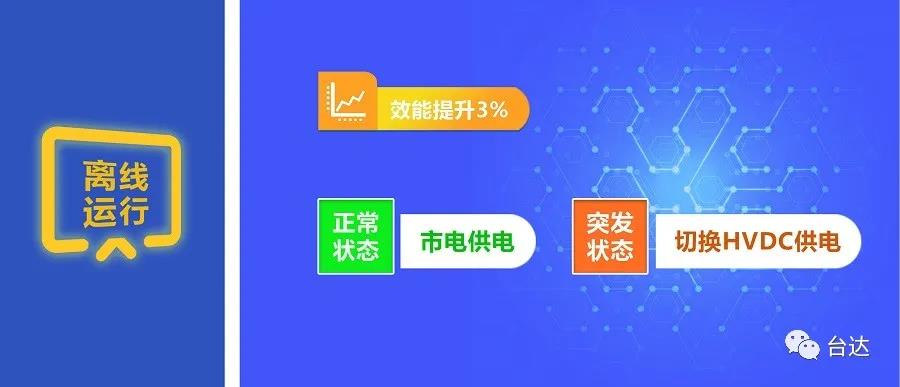 面對(duì)IDC “規(guī)模大,PUE低”的建設(shè)需求,平湖直流鋰電系統(tǒng)可選離線運(yùn)行或者OFF-LINE 運(yùn)行功能,即市電常供,出現(xiàn)問(wèn)題后切換到HVDC系統(tǒng),相比傳統(tǒng)高壓直流供電方案,離線運(yùn)行模式帶來(lái)供電效率的提升可達(dá)3%。