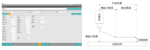 支持斜坡慢起刀功能,能有效解決穿孔濺渣引起的隨動抖動問題;同時支持慢收刀功能,可獨立設(shè)置慢收刀工藝,有效改善收刀處加工效果。