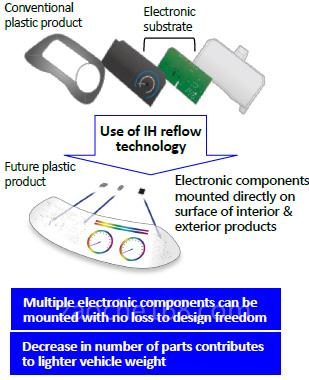 Wonder Future Corporation成立于2013年,總部位于日本東京,擅長(zhǎng)于電子元件安裝技術(shù),具有能夠同時(shí)焊接多個(gè)點(diǎn)的獨(dú)創(chuàng)感應(yīng)加熱(IH reflow)技術(shù)(僅為0.2毫米)。該技術(shù)有望用于在塑料等低耐熱性材料上高效安裝電子元件,而低耐熱性材料是豐田合成眾多主要產(chǎn)品的主要材料。IH reflow技術(shù)可用于內(nèi)外飾產(chǎn)品,如傳統(tǒng)塑料產(chǎn)品、電子基板和未來(lái)塑料,以及將電子元件直接安裝在內(nèi)外飾產(chǎn)品表面上。因此制造商可添加多項(xiàng)電子