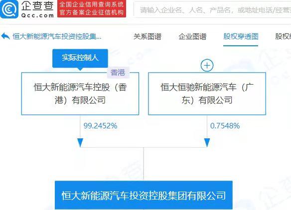 企查查上的公開(kāi)資料顯示,恒大新能源汽車投資控股集團(tuán)有限公司成立于2019年,法定代表人為劉俊,經(jīng)營(yíng)范圍包含:在國(guó)家允許外商投資的領(lǐng)域依法進(jìn)行投資(限外商投資企業(yè)),由恒大新能源汽車控股(香港)有限公司、恒大恒馳新能源汽車(廣東)有限公司共同持股。