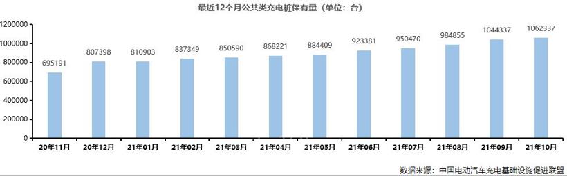 數(shù)據(jù)顯示2021年10月的單月新增公共充電樁數(shù)量1.80萬臺,同比增長59.4%,運(yùn)營商公共充電樁投建和接入力度穩(wěn)步開展中。
