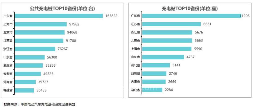 3.1 公共充電樁、充電站TOP10省份建設(shè)情況
