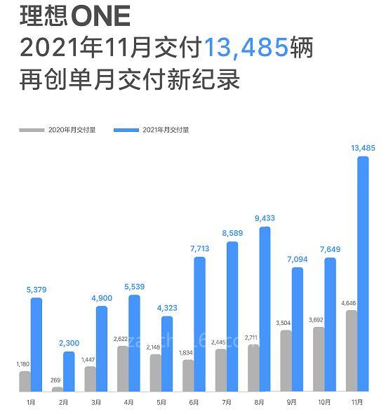 理想汽車(chē)12月1日公布銷(xiāo)量數(shù)據(jù),11月共交付新車(chē)13485輛,創(chuàng)單月銷(xiāo)量新高,同比大幅增長(zhǎng)190.2%。加上10月交付的7649輛累計(jì)21134輛,符合此前官方對(duì)第四季度銷(xiāo)量的預(yù)期。理想汽車(chē)曾預(yù)計(jì)四季度交付3.0萬(wàn)-3.2萬(wàn)輛汽車(chē),同比增長(zhǎng)107%-121%,全年累計(jì)交付8.5萬(wàn)-8.7萬(wàn)輛。