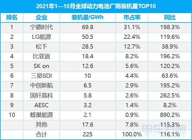 前10月:寧德時(shí)代獨(dú)占鰲頭,蜂巢增幅890.2%