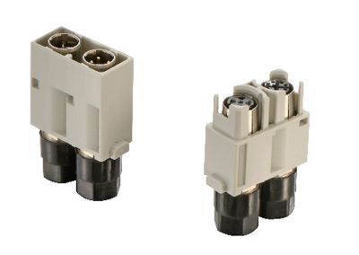 文字說明:Han?Shielded Power Module可用于在模塊化連接器滿足EMC要求的電力傳輸(包括3x電源、PE、信號、屏蔽傳輸)。